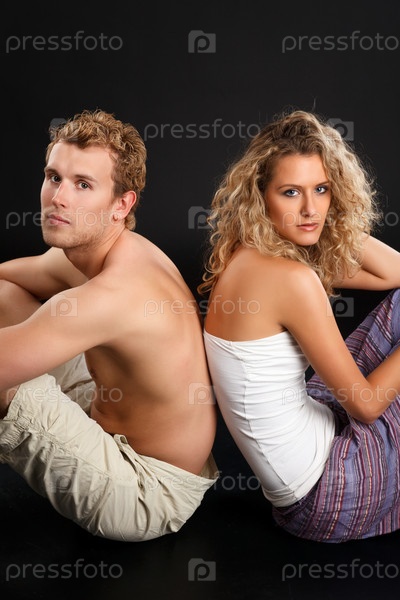 Молодая пара на черном фоне