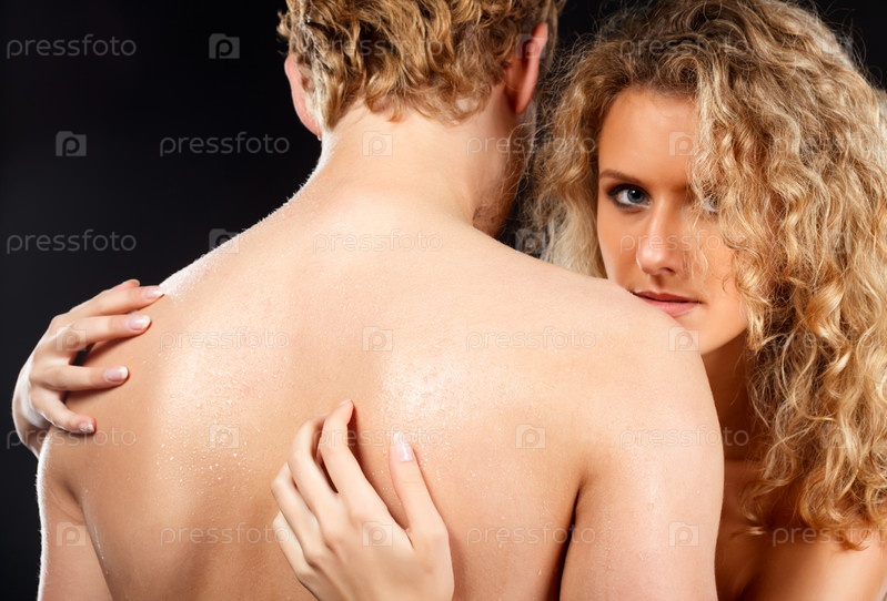 Страстная молодая пара на черном фоне