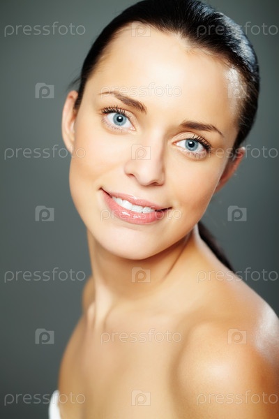 Молодая темноволосая девушка на сером фоне