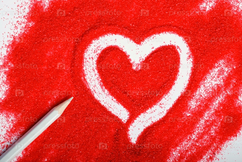 Сердце, нарисованное на красном песке. белый карандаш
