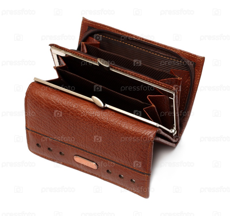 Пустой кожаный кошелек на белом фоне