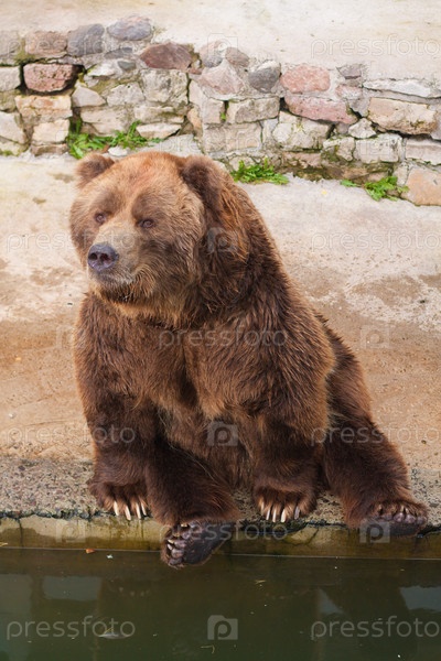 Бурый медведь сидит у воды