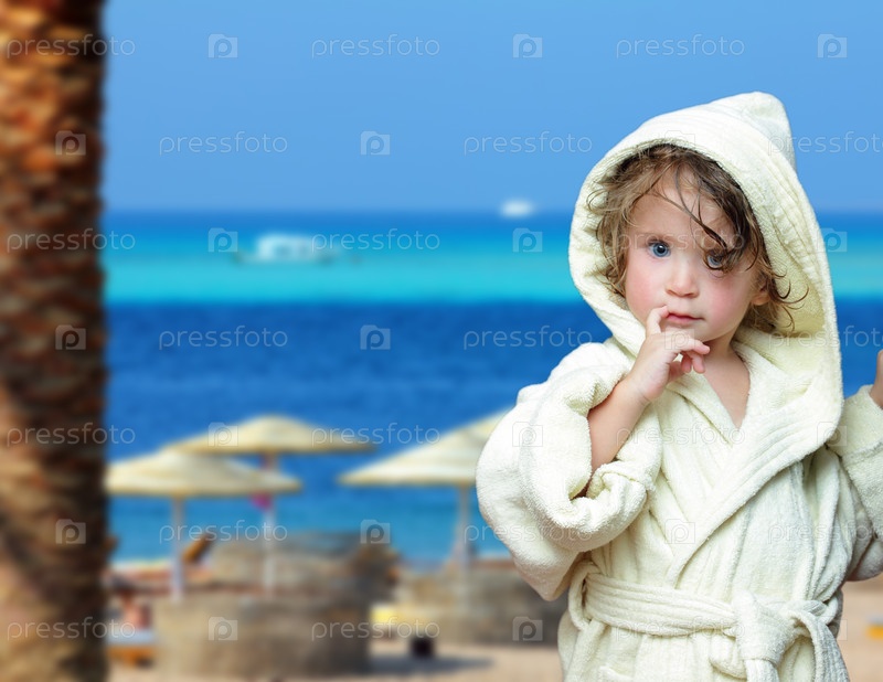 Девочка в халате на тропическом пляже