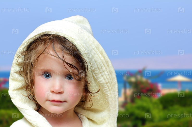 Девочка в халате на тропическом пляже