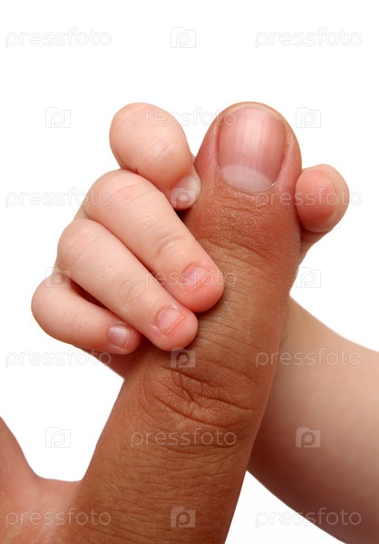 Деткая рука держит палец отца