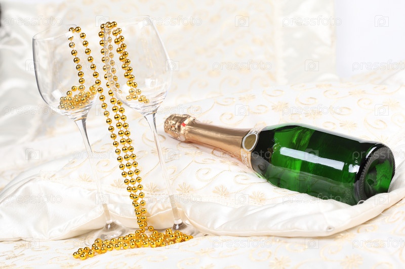 Бутылка шампанского и два бокала