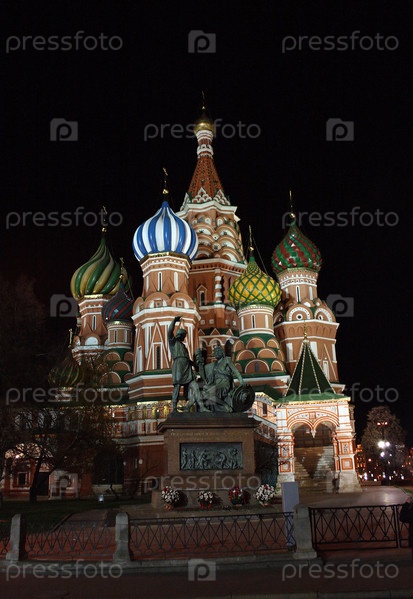 Собор Василия Блаженного в ночное время, Кремль, Москва