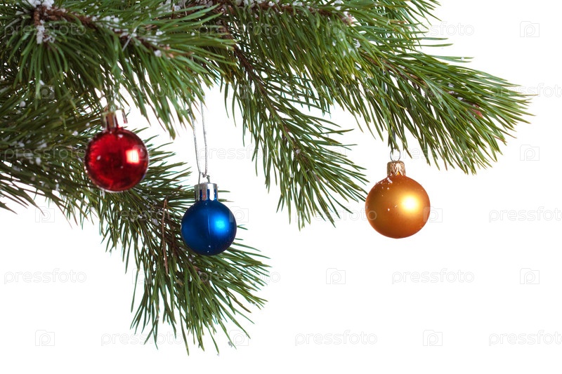 Три новогодних шарика на ветке