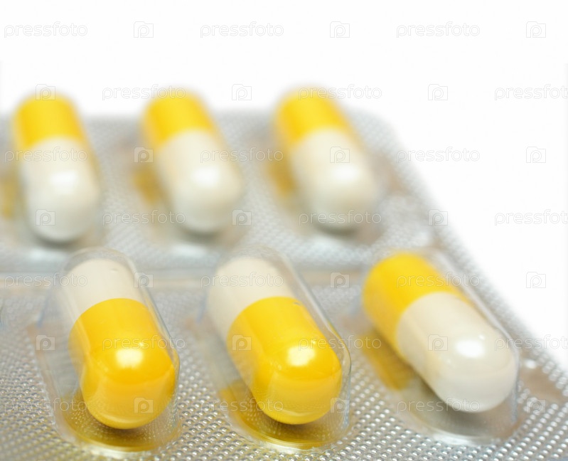 Таблетки в в упаковке на белом фоне