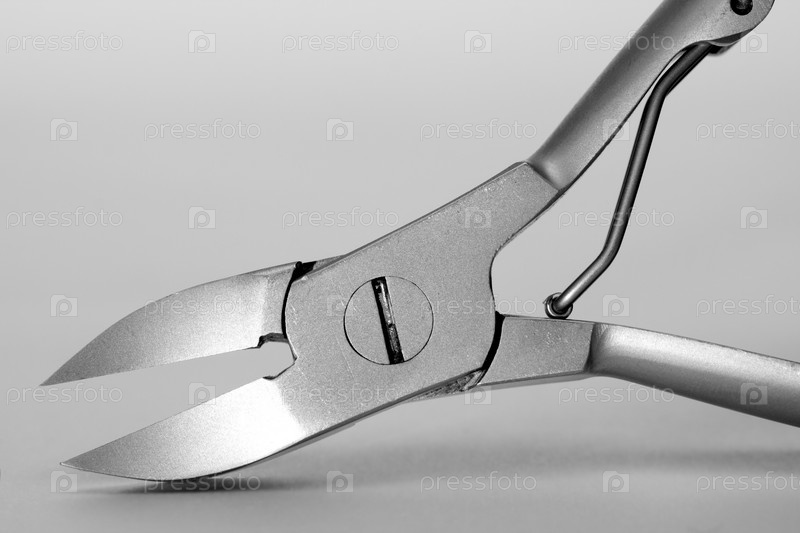 Кусачки крупным планом на сером фоне