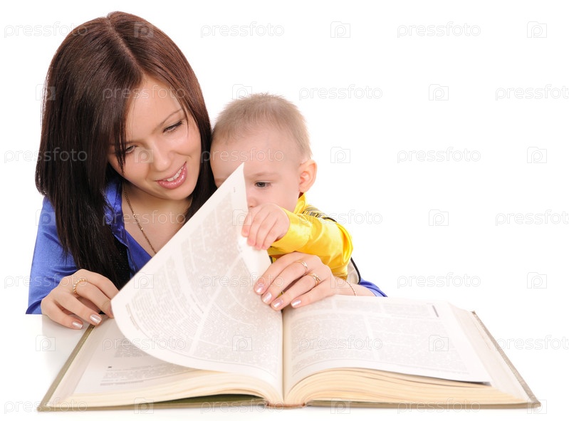 Мать и маленький сын читают книгу