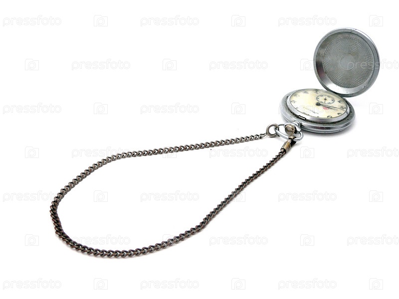 Старые карманные часы с цепочкой, изолированные на белом фоне