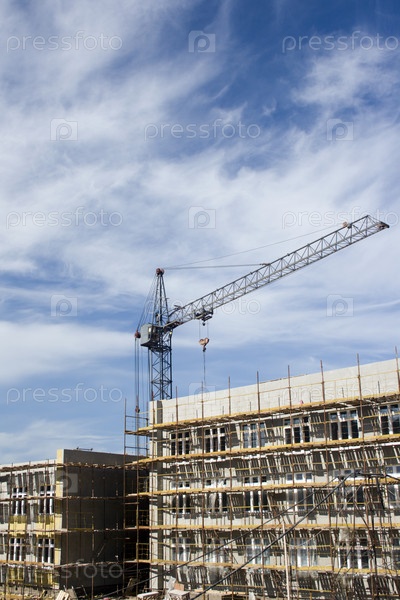 Строительство новых жилых домов на фоне облачного неба