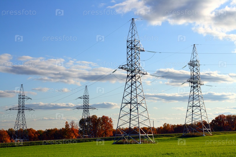 Линии электропередачи на фоне голубого неба