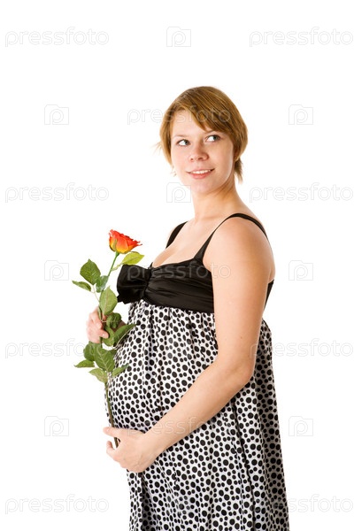Беременная женщина с розой в руках