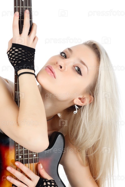 Привлекательная блондинка с гитарой
