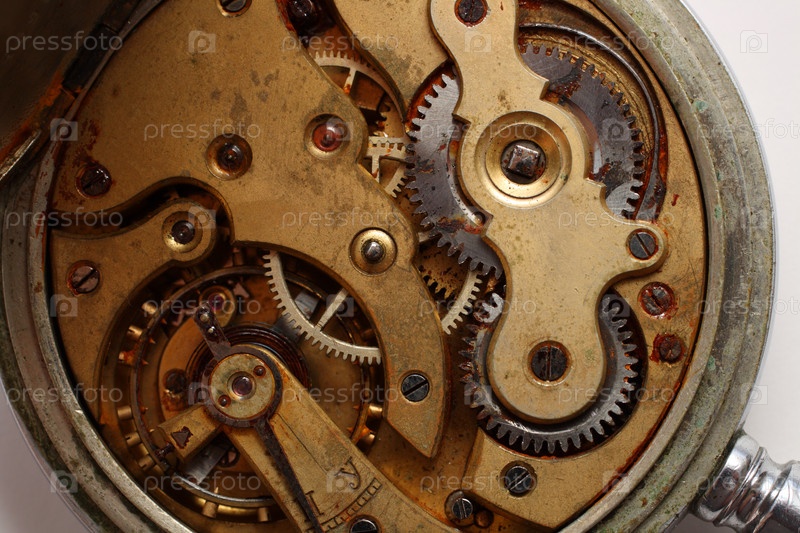 Старый часовой механизм со ржавыми шестернями внутри