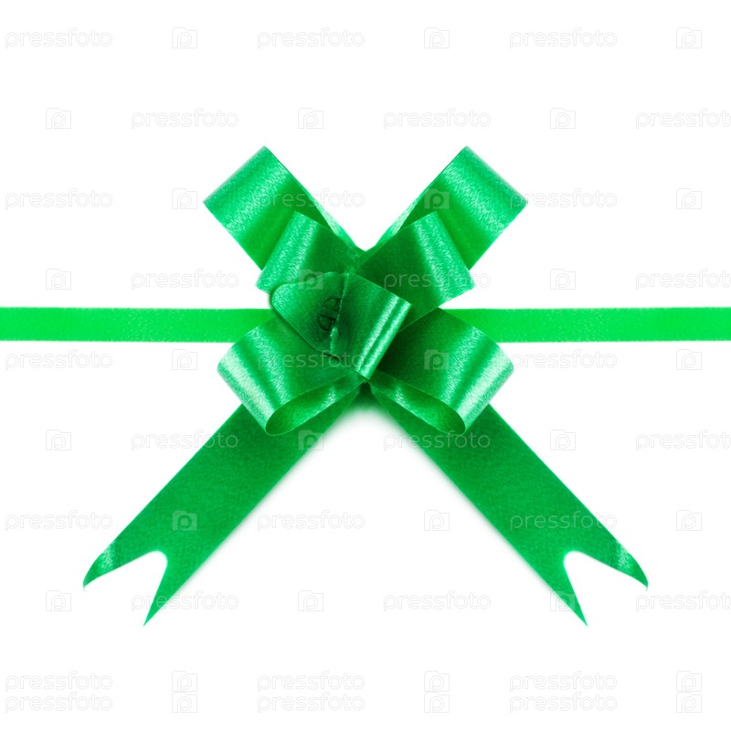 Зеленая атласная лента и бант, изолированные на белом фоне