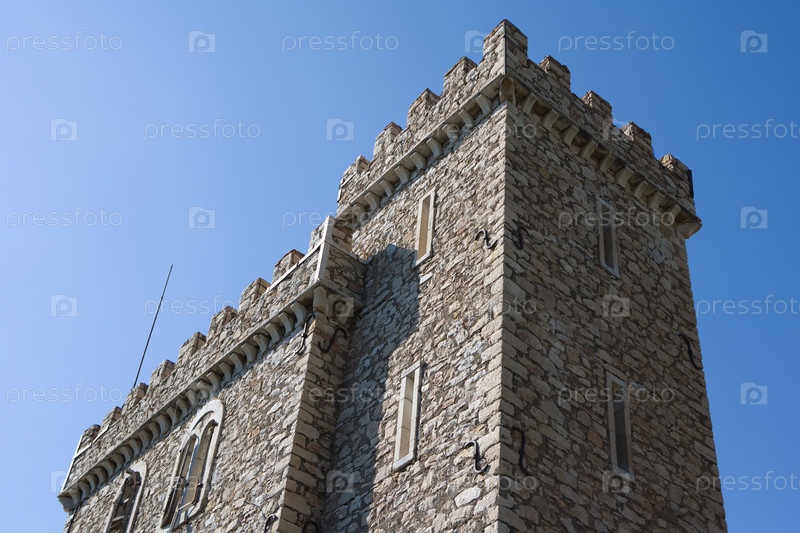 Вид на каменный замок в Греции