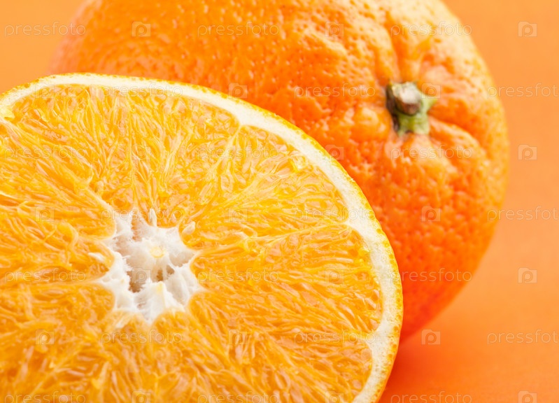 Апельсин на оранжевом фоне