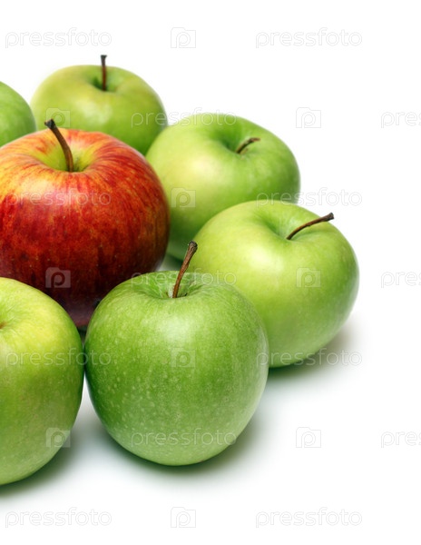 Одно красное и несколько зеленых яблок