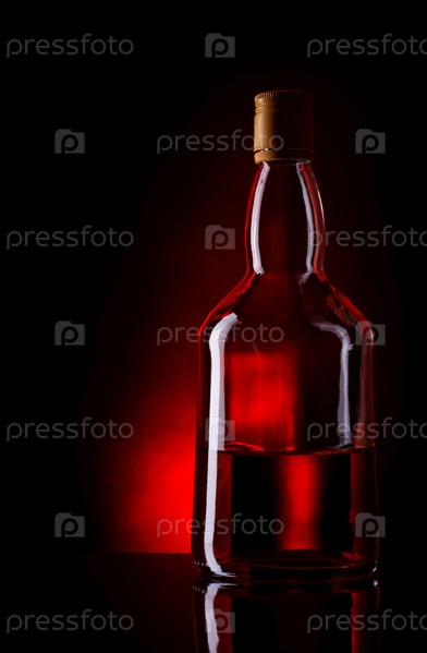 Бутылка виски на темно-красном фоне