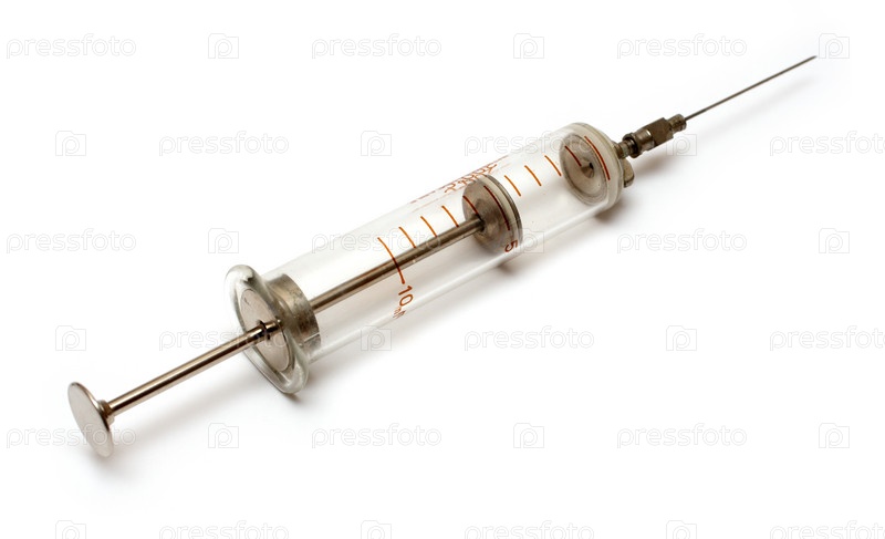 Старый инъекционный шприц на белом фоне