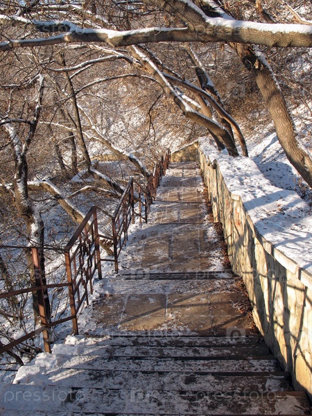 Заснеженная лестница в городском парке