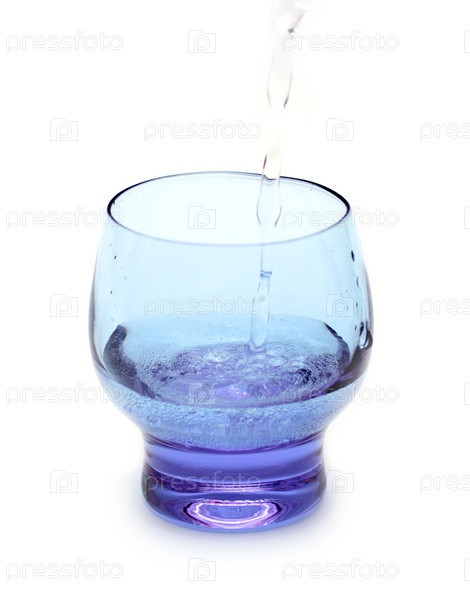 Вода льется в стеклянный стакан
