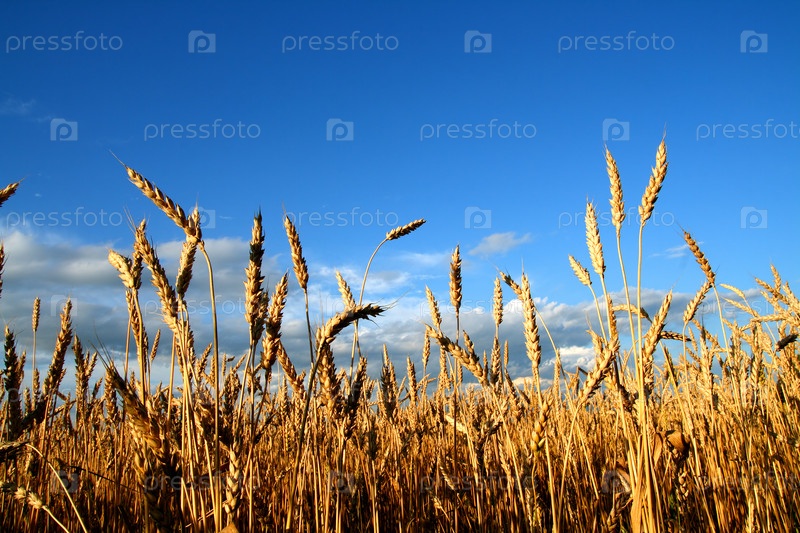 Пшеничные колосья на фоне голубого неба