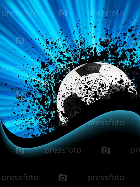Футбольный мяч в черной грязи на синем фоне
