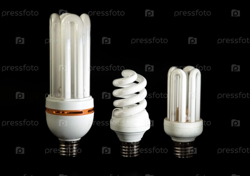 Белая энергосберегающая флуоресцентная лампа на черном фоне
