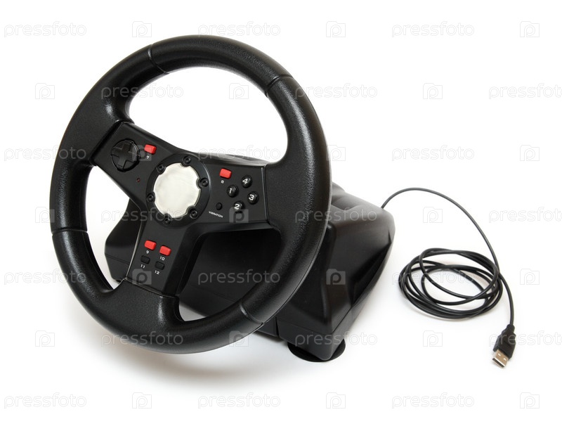 Руль для компьютерных игр на белом фоне