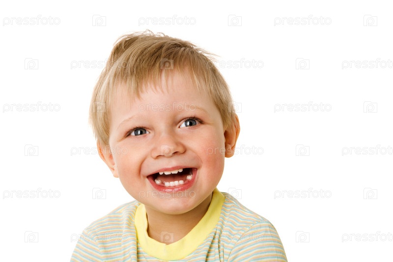 Радостный маленький мальчик на белом фоне