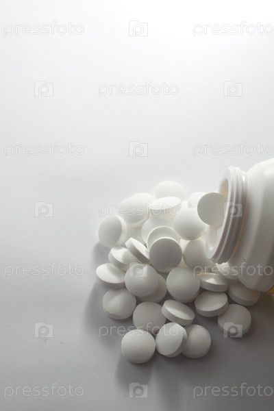 Круглые таблетки на белом фоне
