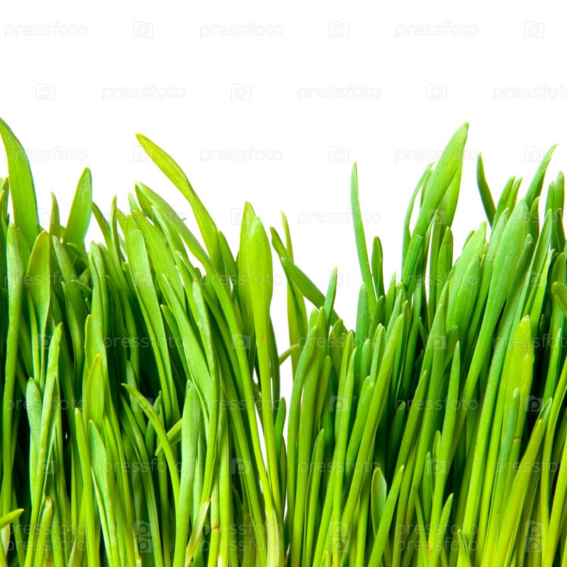 Сочная зеленая трава крупным планом на белом фоне