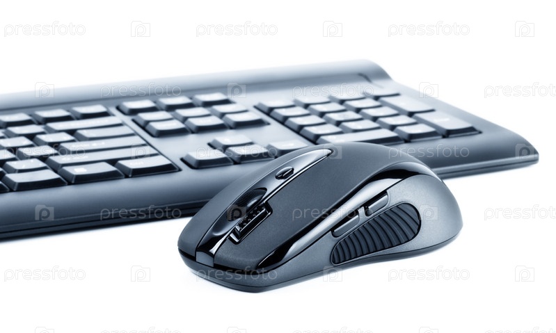 Беспроводная мышь и клавиатура на белом фоне