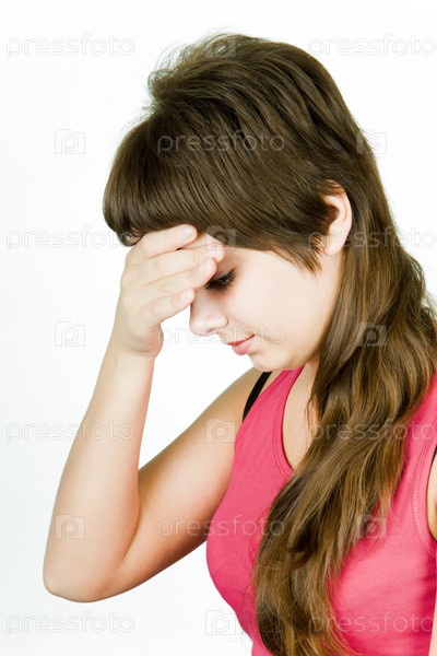 Молодая девушка трогает лоб