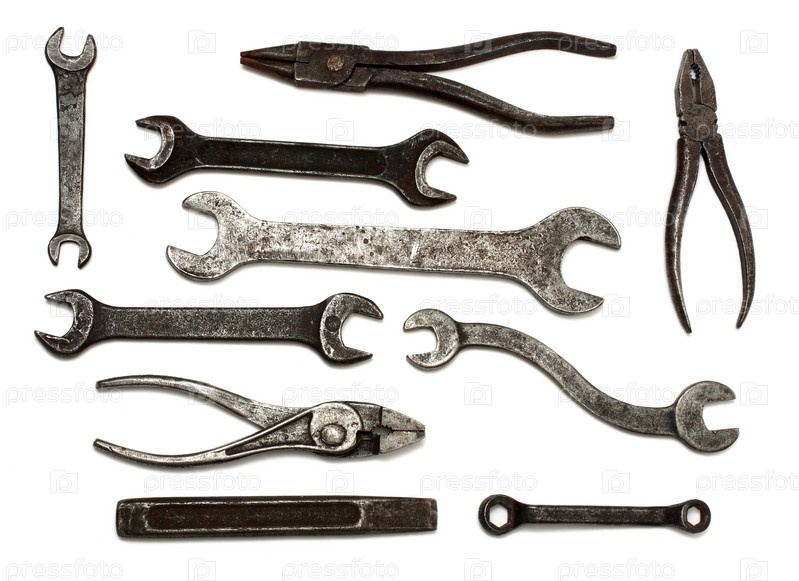 Старые инструменты, изолированные на белом фоне