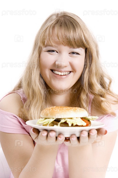 Девушка с гамбургером в руках
