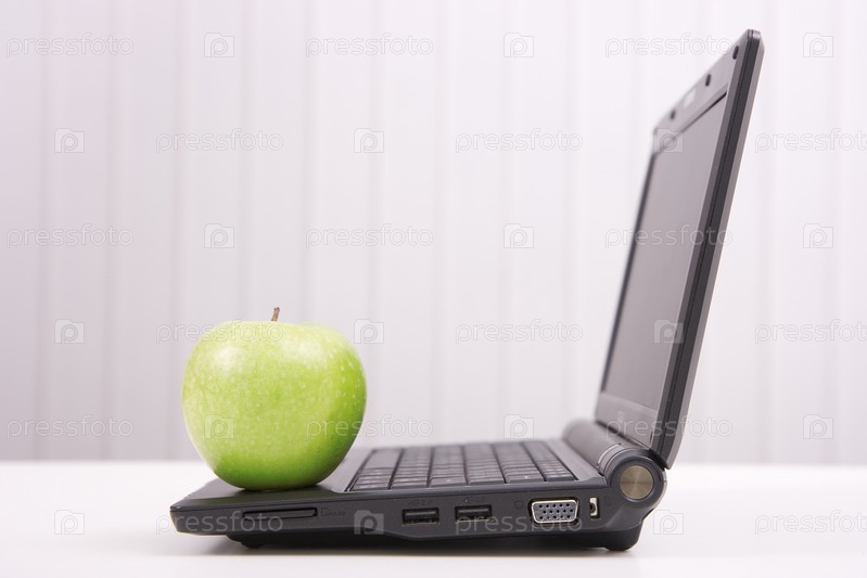 Черный ноутбук и яблоко