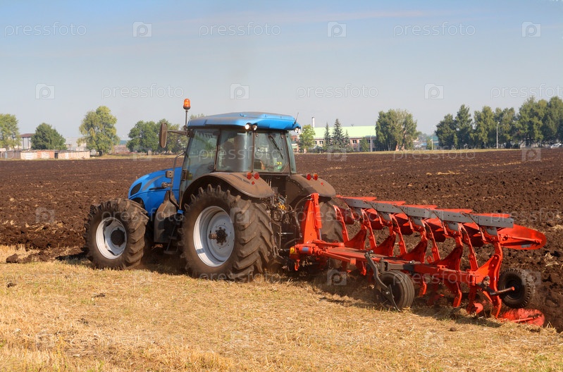 Трактор с плугом в поле