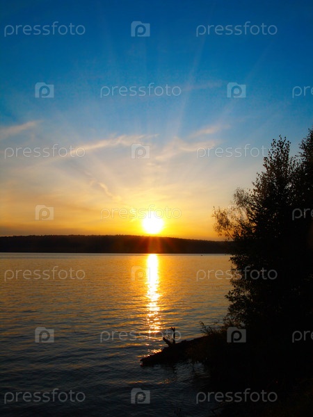 Заходящее солнце над рекой