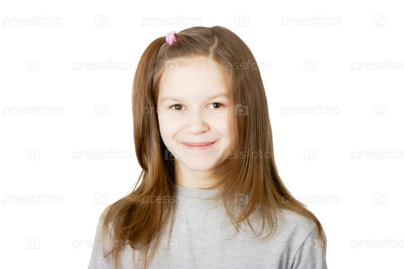 Портрет улыбающейся девочки на белом фоне