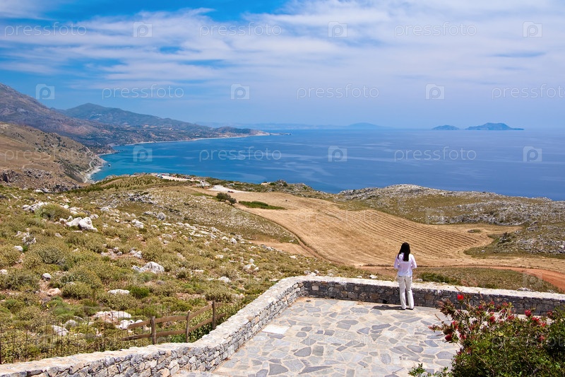 Молодая женщина смотрит на вид