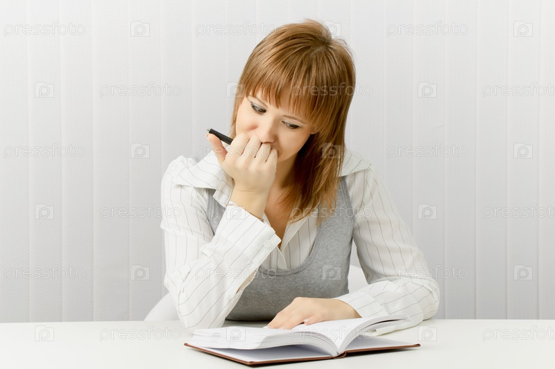 Привлекательная девушка с блокнотом и ручкой в офисе
