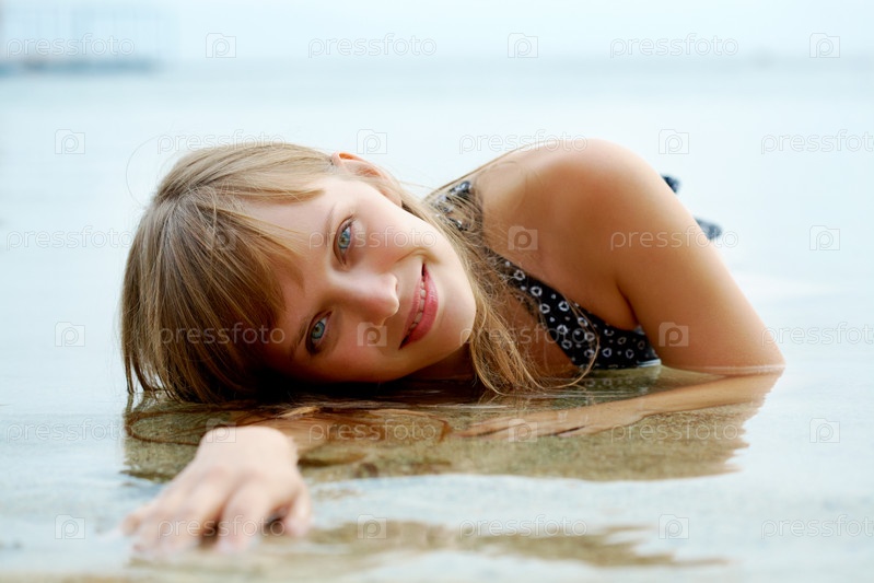 Молодая девушка наслаждается теплой водой