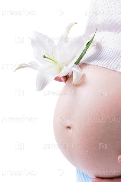 Живот беременной женщины и лилия