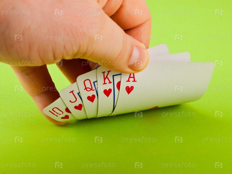 Рука с картами. Флеш-рояль