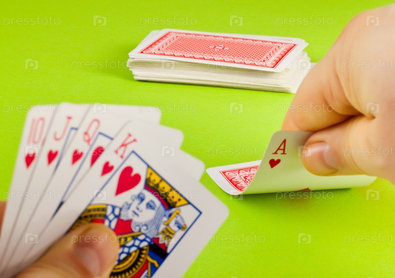 Рука с картами. Флеш-рояль